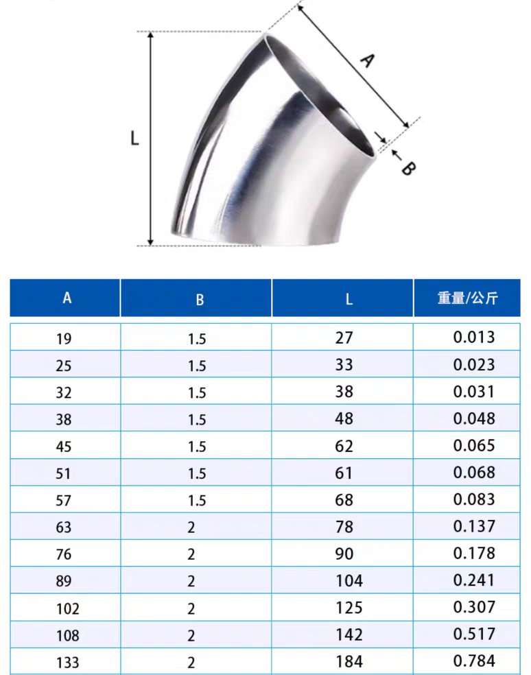 Designed for food, pharma and bioengineering industries, these elbows are made of 304/316L stainless steel. With mirror - polished surfaces , they prevent microbial residue and meet food standards.